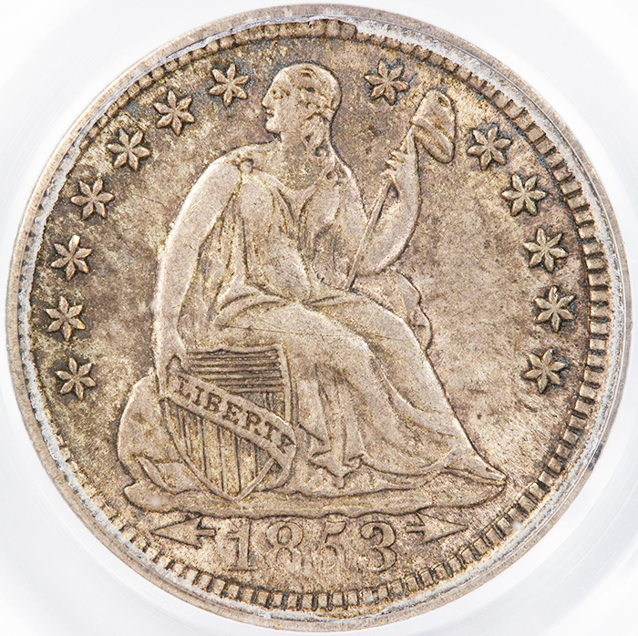 1853 Seated Liberty Half Dime PCGS AU-55 With Arrows CAC