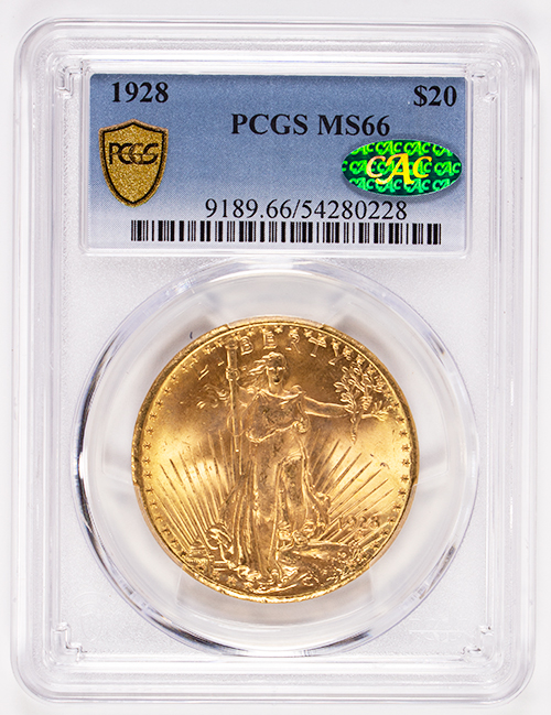 1928 St. Gaudens $20 Gold Piece PCGS MS-66 CAC