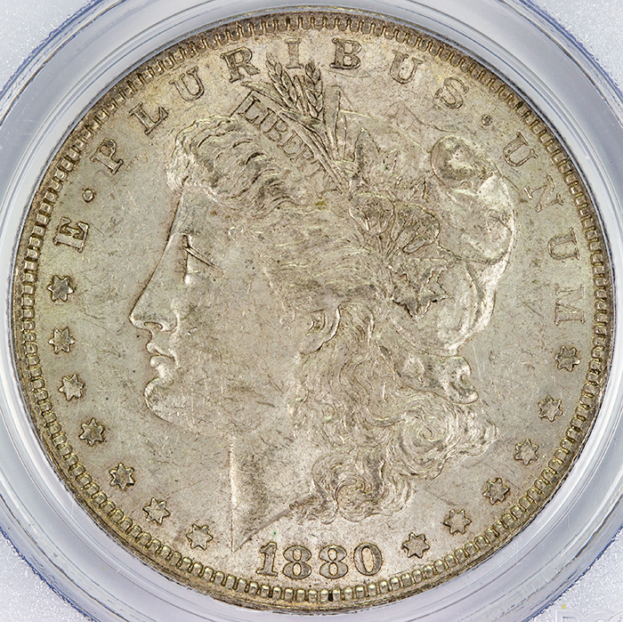 1880 Morgan Dollar PCGS AU-55 Top 100 VAM 6 8/7 Spikes