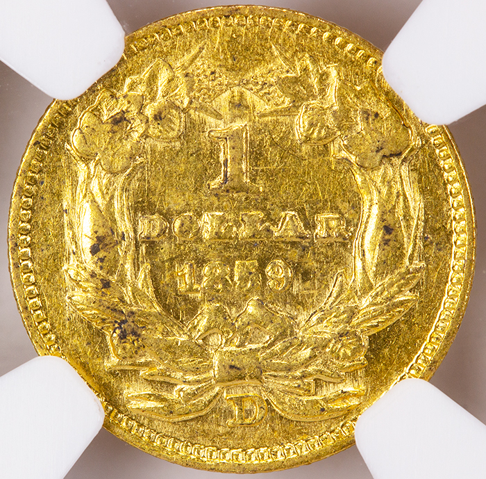 1859-D Type 3 $1 Gold Piece NGC AU-58 CAC
